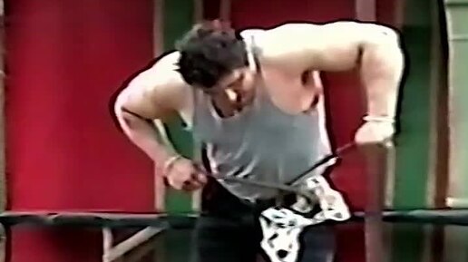 Дмитрий Халаджи, сгибание металического прута диаметром 18 мм., в пружину на сельской свадьбе