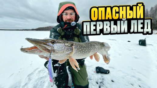 ПЕРВЫЙ лед 3 сантиметра ТРЕЩИТ и ломается под ногами! ЩУКА В каждой ЛУНКЕ!