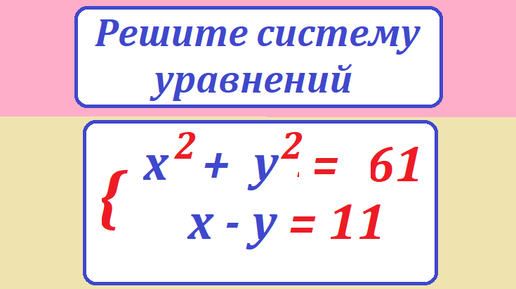 Решите несложную систему уравнений x^2 + y^2 = 61; x - y = 11