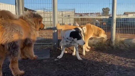 Тибетский мастиф Барыс с радостью живёт с двумя среднеазиатскими овчарками на одной территории