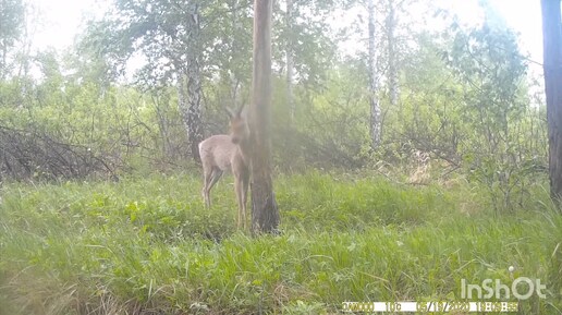 Сибирские косули у любимого дерева. Лето 2020 года.