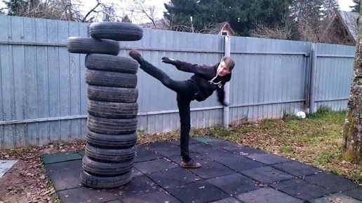 Серии ударов ногами и руками по шинам. День 78, 79.