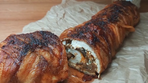 Куриный рулет с грибами.Готовится он быстро и легко, подавать можно как основное блюдо или холодный перекус.