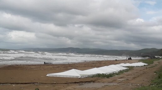 Детский лагерь Орлёнок. Море штормит, Ветер с ног сдувает, но ребятам всё "нипочём". Дети танцуют, поют, дружат