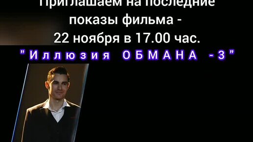 Приглашаем на фильм "ИЛЛЮЗИЯ ОБМАНА-3" 2D, 12+, 110 мин. #кинозалДКям