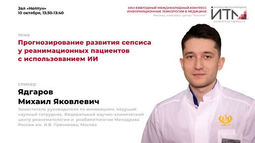 Ядгаров Михаил Яковлевич. Прогнозирование развития сепсиса у реанимационных пациентов с использованием ИИ