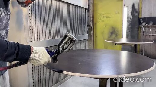 Нанесение лака на край столешницы.