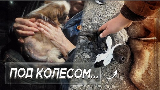 Пёс лёг под колесо отдохнуть, когда машина поехала...Второй пёс с больной шерстью, спасаем бедняжек!