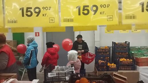 Магазин Победа отдел фрукты и овощи, масло подсолнечное.