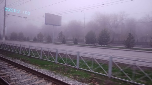 Туманный Волгоград из окна скоростного трамвая