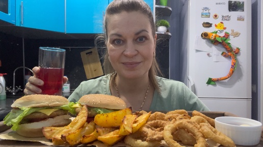 МУКБАНГ БУРГЕРЫ 🍔 ЛУКОВЫЕ КОЛЬЦА/КАРТОФЕЛЬНЫЕ ДОЛЬКИ/MUKBANG ЕДА ОБЖОР