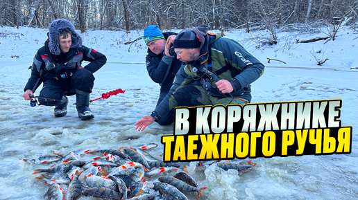 В коряжнике ТАЕЖНОГО РУЧЬЯ по ПЕРВОМУ льду осталась КУЧА окуня и щуки!