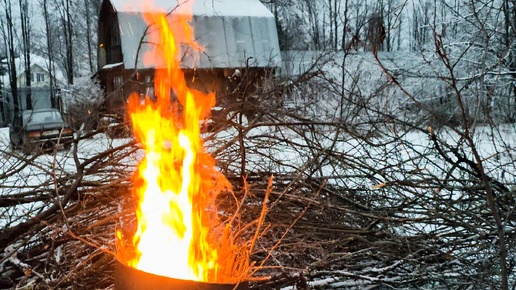 Сжигаем ветки в БОЧКЕ, рубим, пилим. У Шурика на дачном участке.