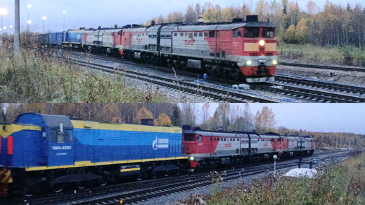2ТЭ10МК-0429/3655 и ТЭМ7А-0301 со сборным грузовым поездом проходит станцию Микунь
