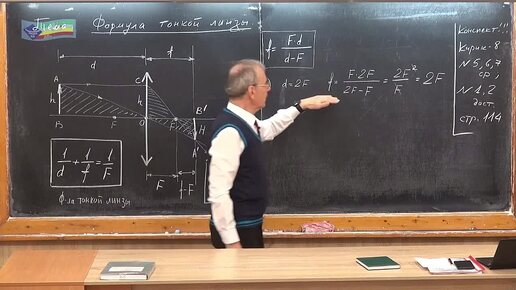 Расчет фокусного расстояния изображения предмета, находящегося на двойном фокусном расстоянии
