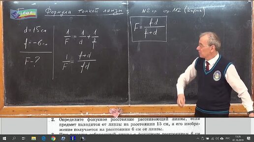 Задача на определение фокусного расстояния рассеивающей линзы по известному расстоянию и его изображению предмета
