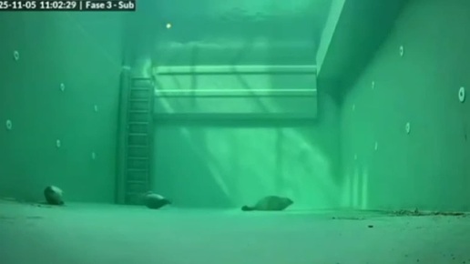 В нидерландском питомнике показали, как тюлени задерживают дыхание и спят, чтоб через минуту проснуться и набрать воздух для повторного сна