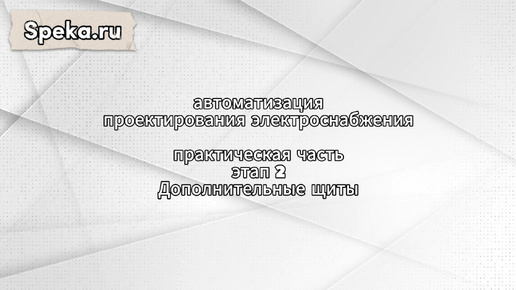 1.6 Практический урок. Этап 2. Дополнительные щиты / Автоматизация проектирования электроснабжения