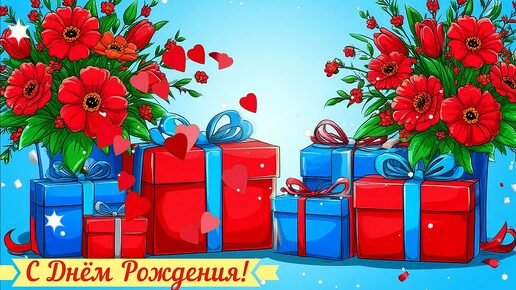 С Днём Рождения! Поздравление КРАСИВАЯ Открытка Видео