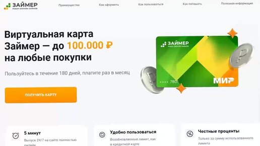 Виртуальная карта Займер — до 100.000 ₽ на любые покупки
