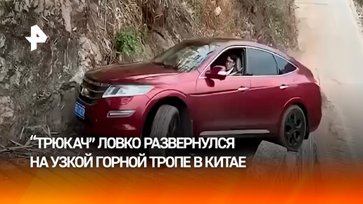 Китаец развернул кроссовер на узкой горной тропе, свисая колесами в пропасть