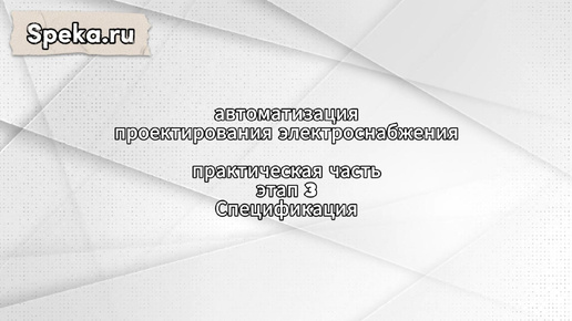1.7 Практический урок. Этап 3. Спецификация / Автоматизация проектирования электроснабжения