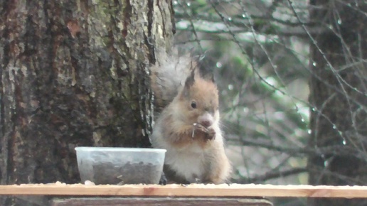 Птицы, белки. Кормушка для птиц.