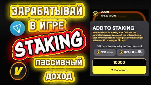 Staking стейкин монеты Vcoin VOXEL как заработать. как пользоваться 32,4% в месяц. собирай доход каждый день.