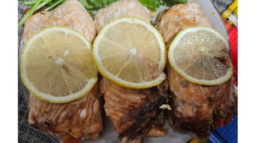 Рыбные рулеты с помидорами