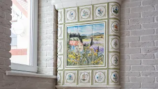 Банная печь в изразцовой облицовке "Прованс" с живописью