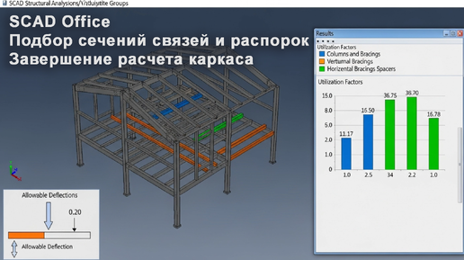 [НИП-Склад] 09 SCAD: Подбор сечений связей и распорок | Завершение расчета каркаса