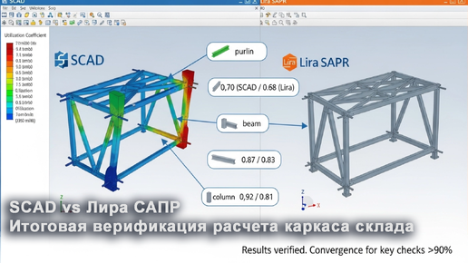 [НИП-Склад] 12 Сравнение SCAD и Лира САПР | Итоговая верификация расчета каркаса склада