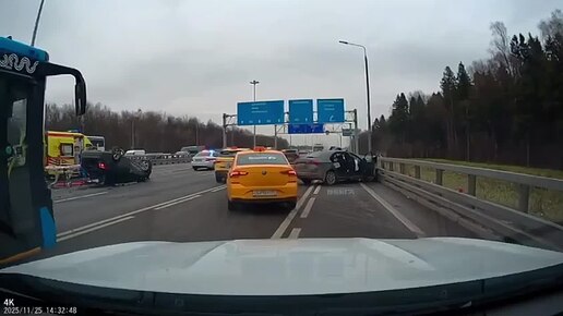 На Киевском шоссе крупное ДТП в районе города Московский Один из автомобилей перевернулся. В сторону Москвы собралась пробка