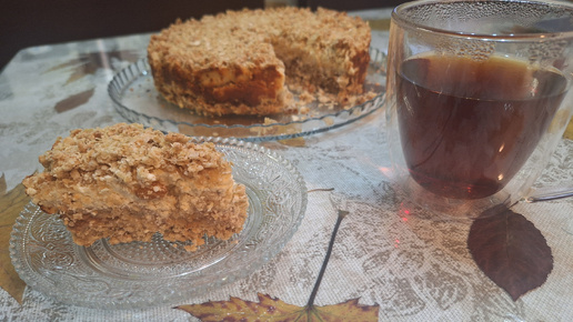 Пирог из овсяных хлопьев с творогом и яблоками.