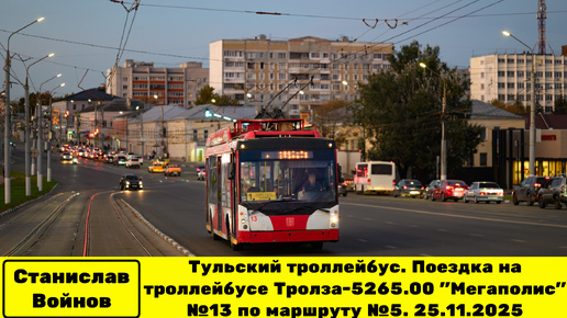 Тульский троллейбус. Поездка на троллейбусе Тролза-5265.00 "Мегаполис" №13 по маршруту №5. 25.11.2025
