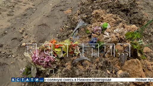 Песок с могильными цветами и венками используют при укладке новых дорог в Выксе