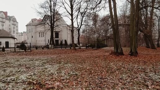 Осенняя прогулка в небольшом Парке рядом церковь Баптистов и небольшая речка