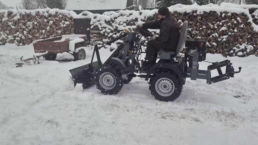первый снег, мини-погрузчик ТОР-35 с отвалом