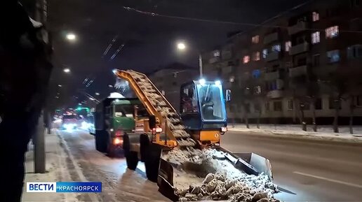 На улицы Красноярска вышли два больших комплекта снегоуборочной техники