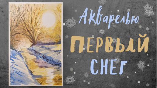 Нарисуем акварелью зимний пейзаж с закатным небом в ограниченной цветовой палитре