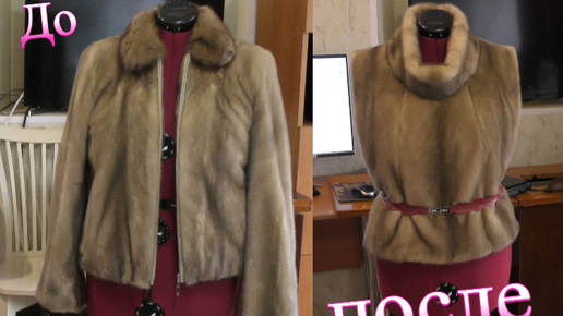 Стильная манишка из норковой куртки . Видео - урок по перешиву 24 .