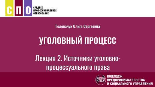 Уголовный процесс. Лекция 2. Источники уголовно-процессуального права