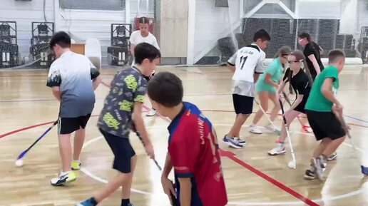 Кадры с тренировки по флорболу (хоккей с мячом в зале)