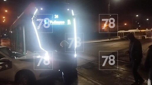 Трамвай столкнулся с автомобилем доставки в Рыбацком