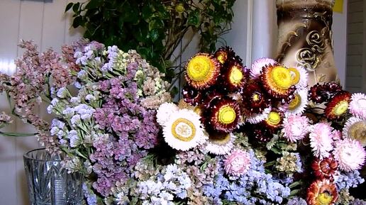 Букеты на Зиму из Живых Сухоцветов - Гелихризума ( Бессмертника ) и Статицы.