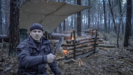 24 ЧАСА ВЫЖИВАНИЯ ОДИН В СЫРОМ ЛЕСУ ИСПЫТАНИЕ МОКРЫМ СНЕГОМ