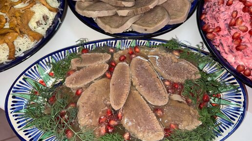 Говяжий, отварной язык - четыре блюда и полный стол.