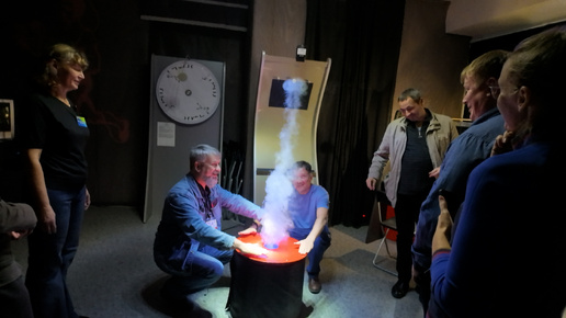 ТШПФ 2025 учителя физики проводят эксперименты в музее Троицкого ДУ.