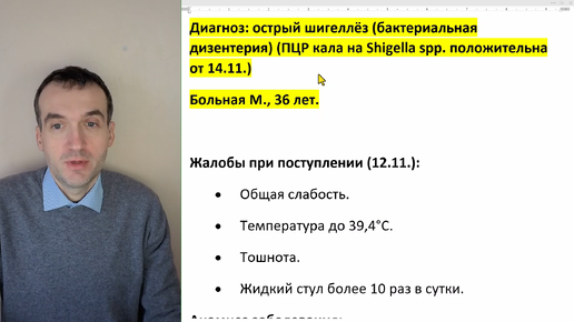 Больная М., 36 лет. - острый шигеллёз (бактериальная дизентерия) (ПЦР кала на Shigella spp. положительна)
