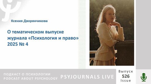 Дворянчикова К.Н. рассказывает о тематическом выпуске журнала «Психология и право» 2025 № 4